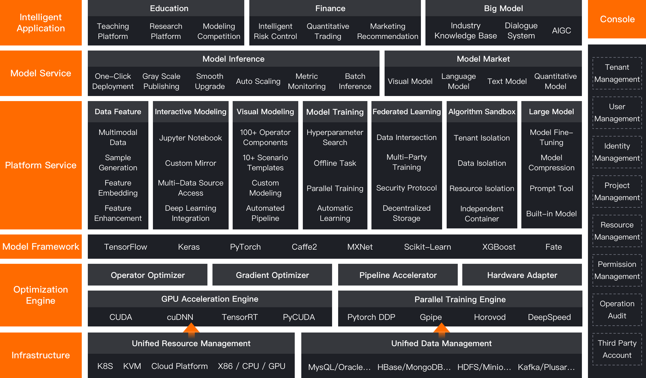 Encapsulate over 100 visual modeling operators, supporting no-code machine learning and deep learning, thereby reducing the barrier to using the product.