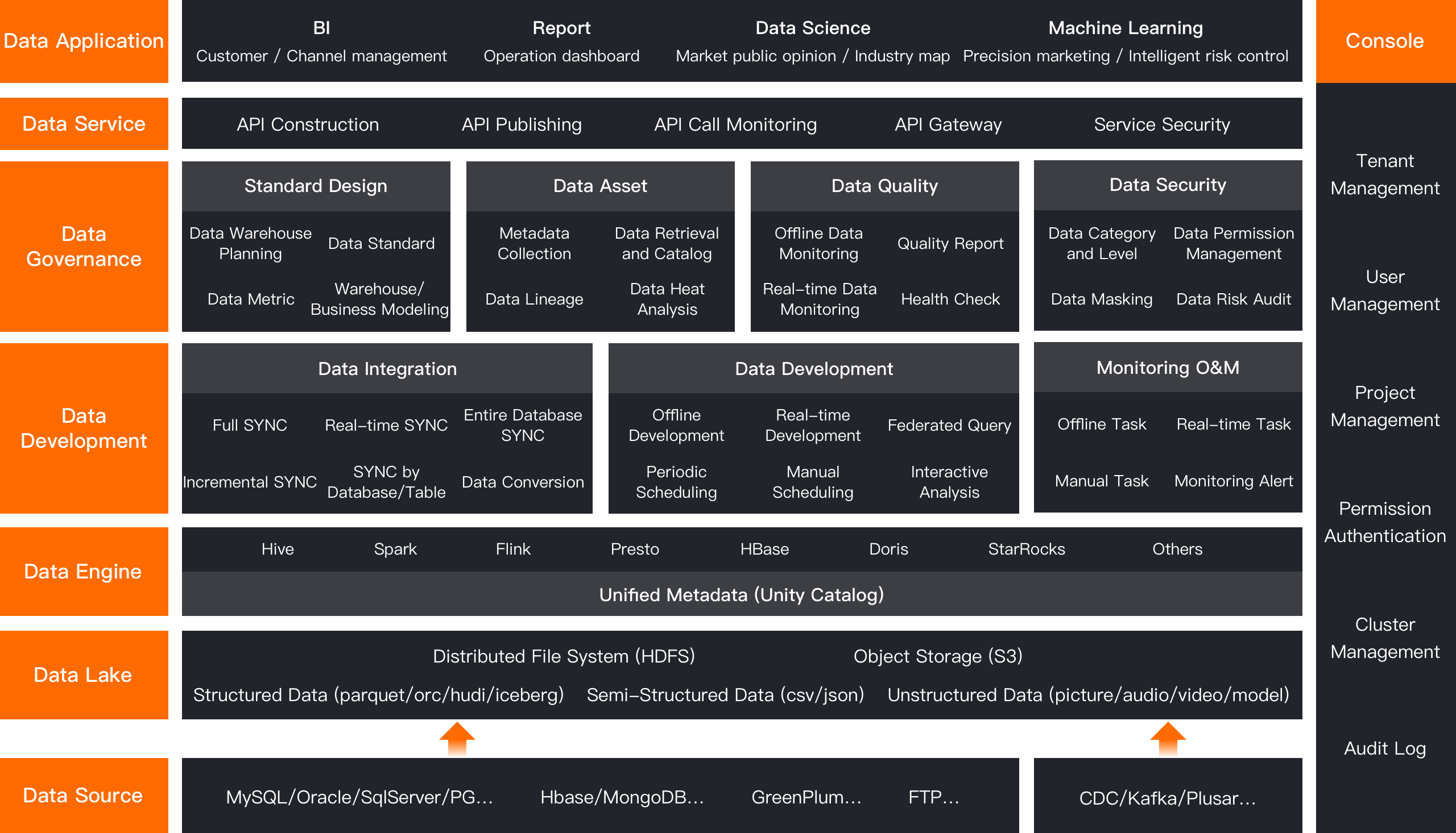 Adopting cloud-native technology, it supports architectures such as storage-compute separation, stream-batch integration and Lakehouse. This enhances resource utilization, improves system reliability and reduces management complexity.