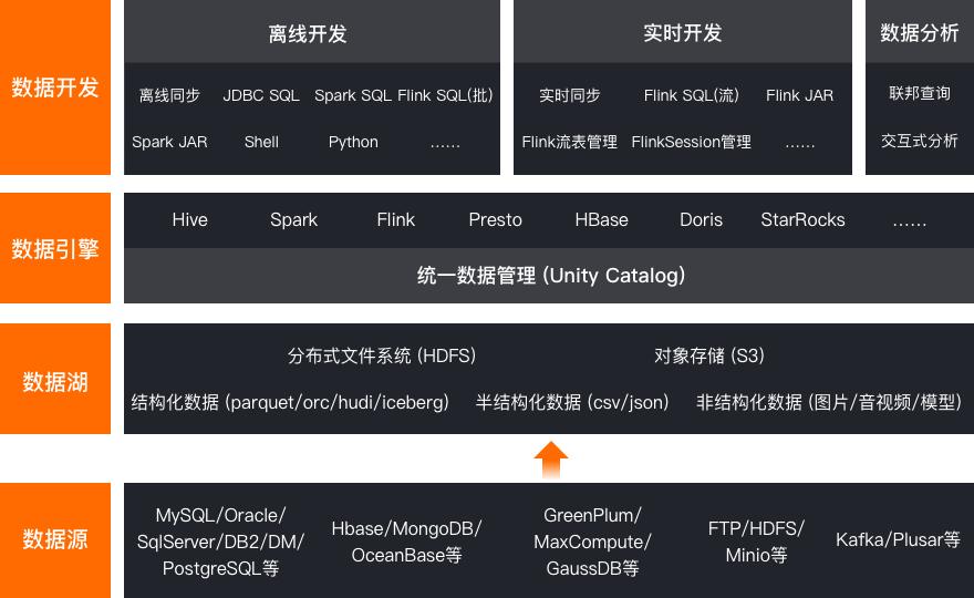 拥有一站式建设数据集成、开发、运维、安全等能力,为企业建设全域数据仓库提供基础设施,利用全域数据去驱动业务,构成业务与数据联通的闭环,让数据发挥更大价值。